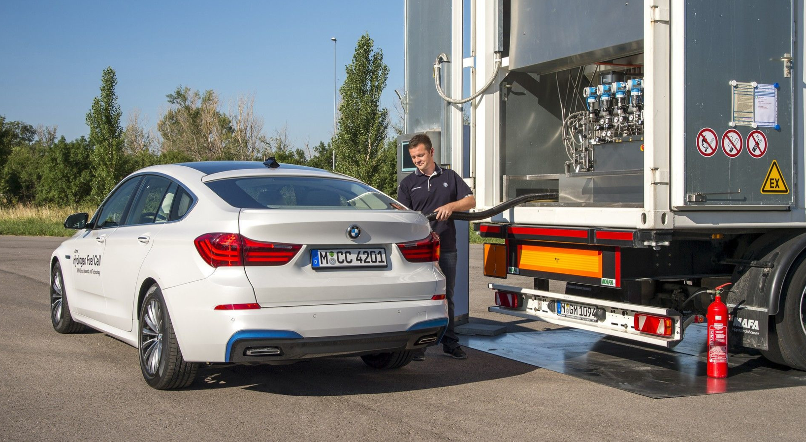 이것은 수소차가 전기차와 일반 휘발유차의 요소를 모두 가지고 있다는 것을 의미합니다.