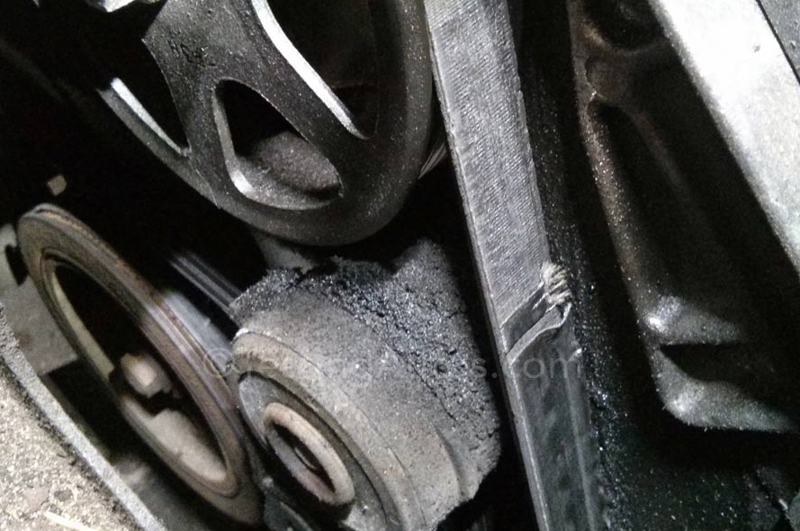 구동 벨트를 교체해야 하는 또 다른 일반적인 이유는 벨트가 기름에 젖었을 때입니다. 오일은 다음 사진과 같이 고무 소재를 손상시킵니다.